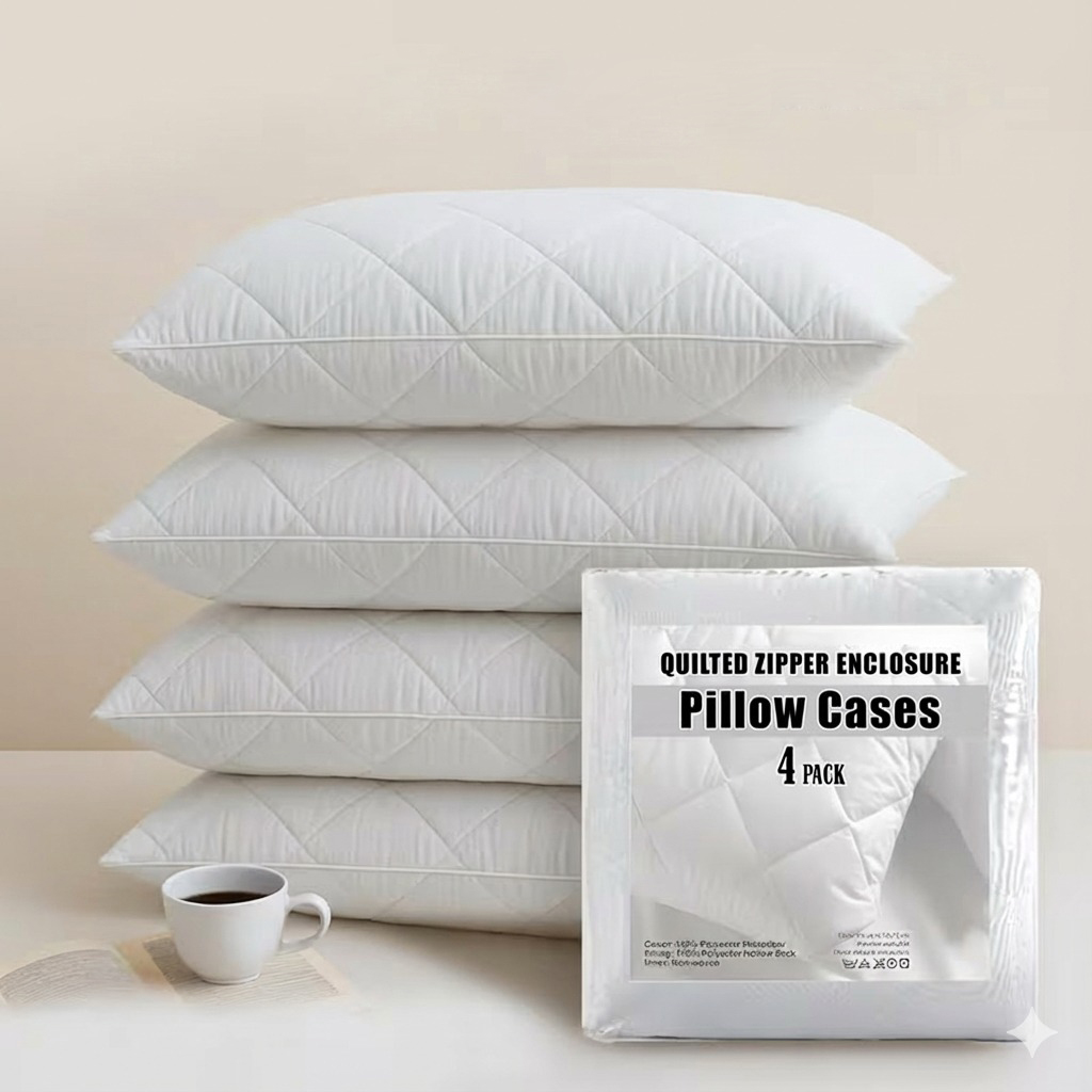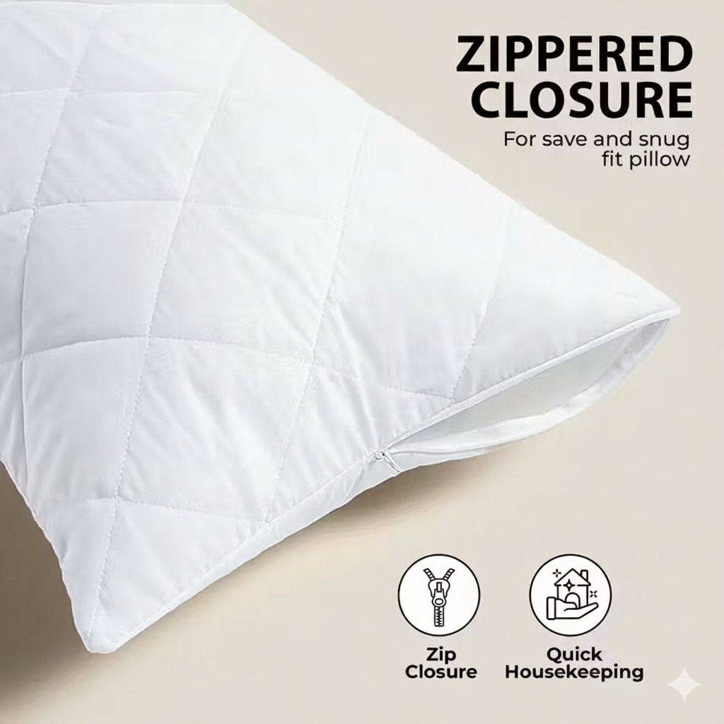 Upgrade your bedding with these Quilted Zippered Pillow Protectors, designed to keep your pillows cleaner, fresher and protected for longer. Made with a soft quilted microfiber surface, they offer gentle cushioning while maintaining excellent airflow for a cool, breathable sleep. The zippered closure fully encloses your pillow, creating a hypoallergenic barrier against dust mites, allergens and everyday wear. A inner layer helps safeguard against spills, stains and moisture, keeping your pillows hygienic and extending their life. Perfect for daily use, these protectors are machine washable, quick-drying and suitable for homes, hotels, guest rooms and rental properties.
