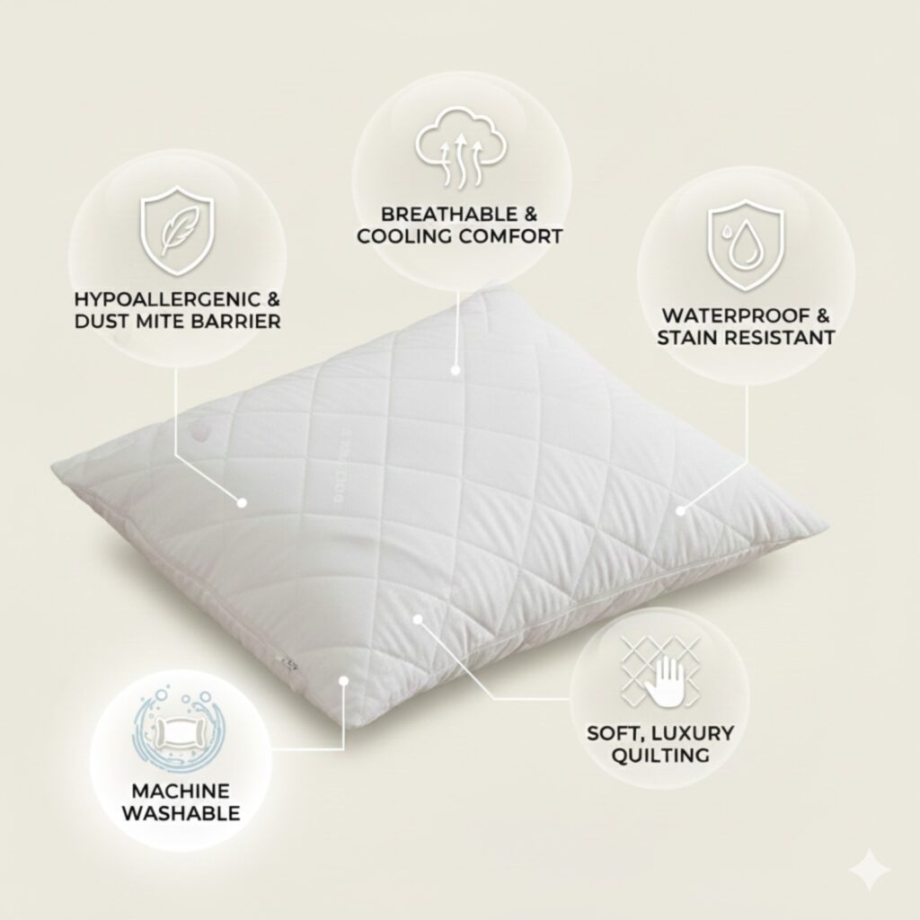 • Stain Resistant – Protects pillows from spills, moisture, sweat and everyday stains, helping maintain pillow freshness.